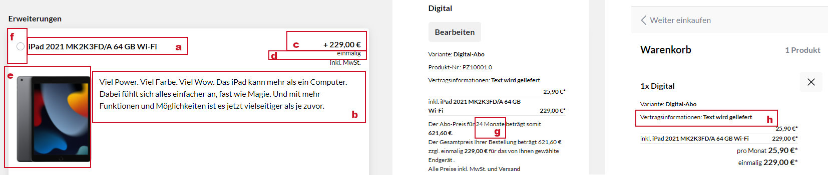h. Produkt/Variant -> Spezifikationen -> Zusatzfelder -> VertragsInformationen -> Text - Produkt/Variant -> Spezifikationen -> Zusatzfelder -> Artikel Anpassungen