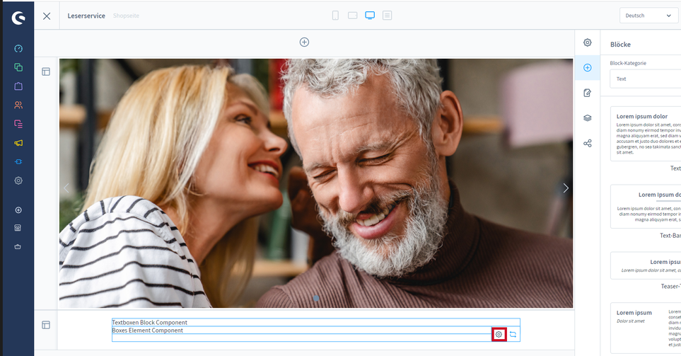 Inhalte → Erlebniswelten → Leserservice. Der Rad erscheint bei mouse hover
